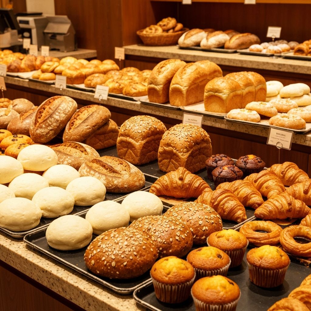 Fresh bread, buns, pastries, and local bakery items baked daily.