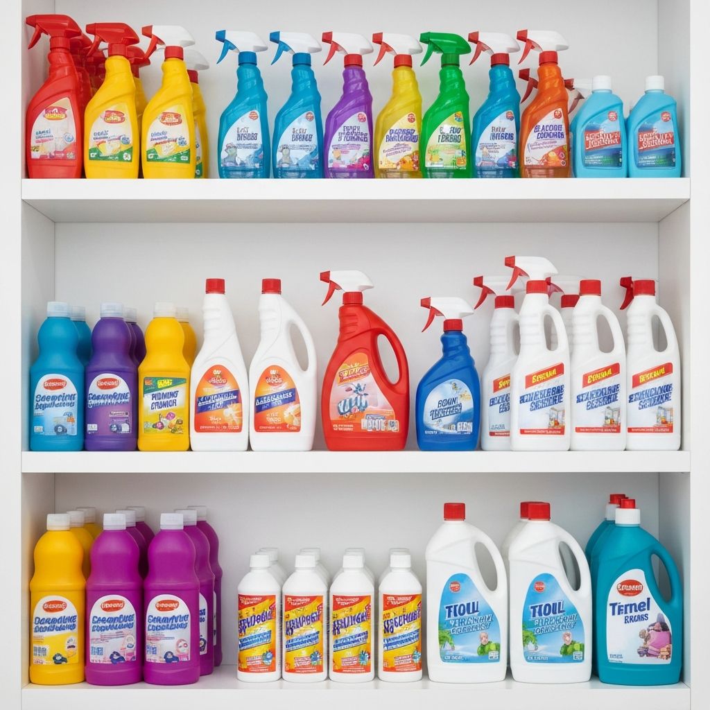 Household & commercial cleaning products, disinfectants, detergents, and tools.