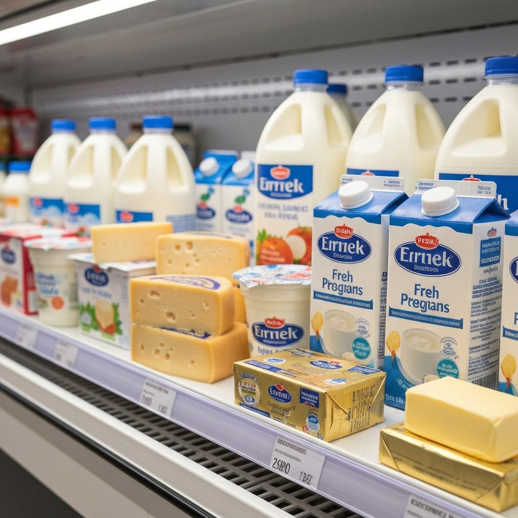 Milk, cheese, yogurt, butter, and fresh eggs — everyday essentials.